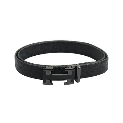 Black textured synthetic leather belt Secured with a slider buckle closure.