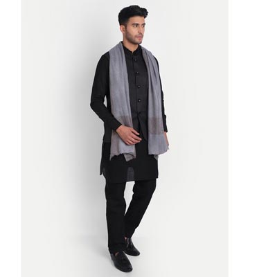 Woven design stole has fringed border